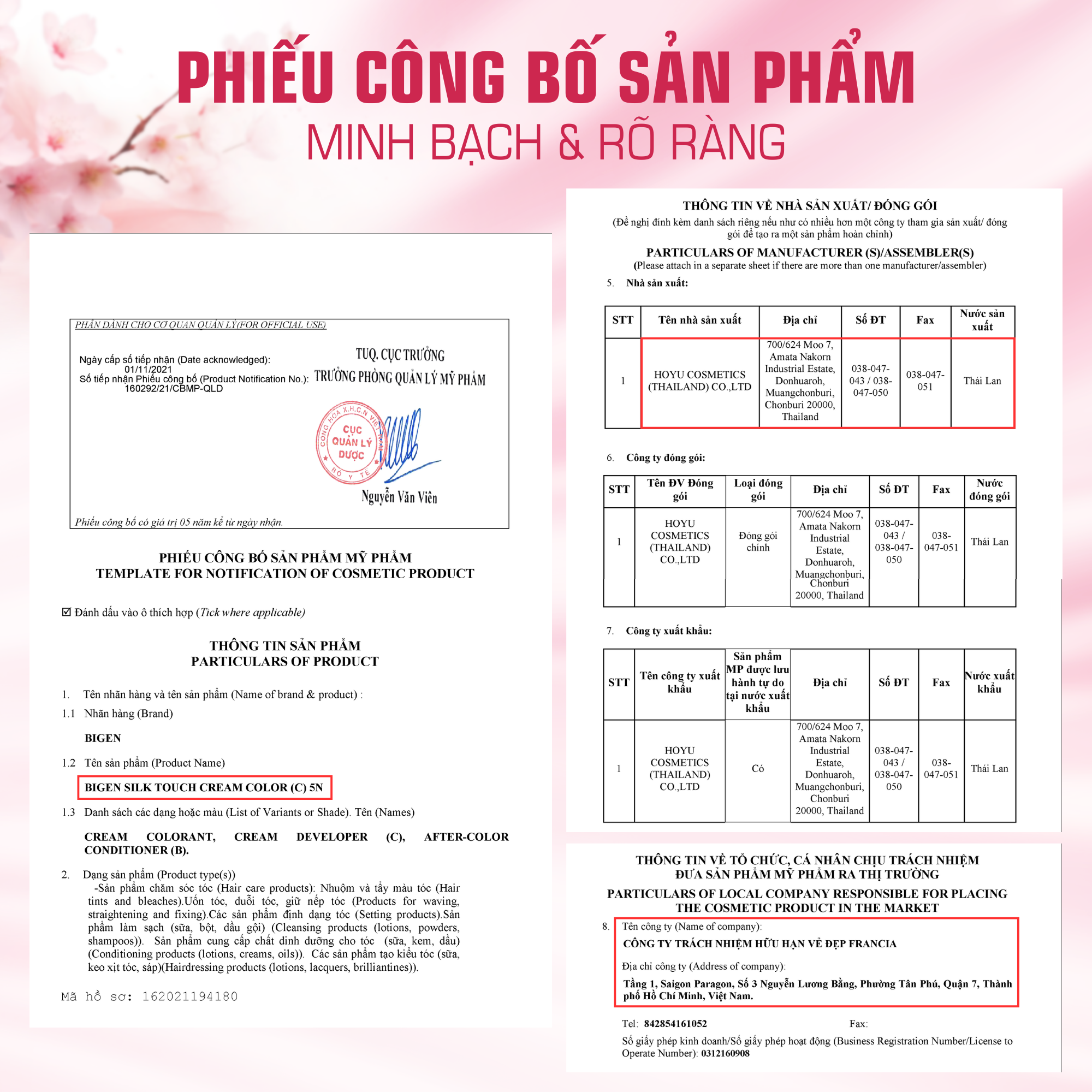 XUẤT XỨ: Thái Lan (nhà máy trực thuộc tập đoàn Hoyu, Nhật Bản)
